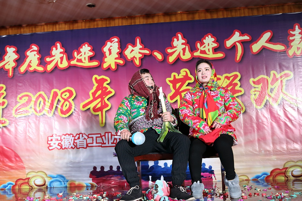 整場聯歡會由音歌快板、情景劇、小品、詩朗誦、舞蹈、才藝表演、女聲獨唱等12個節目組成,均為職工自編自導自演。伴隨著悅耳動聽的音歌快板表演《企業興旺我自豪》,聯歡會正式拉開序幕。情景劇《我驕傲 我是省安人》,反映了安徽安裝人用勤勞和汗水,創造了一個個值得驕傲的碩果;詩朗誦《風雨同行 以心筑夢》,展現了安徽安裝人不斷開拓新市場,實現新突破的壯麗征程;舞蹈《精忠報國》,傳遞了安徽安裝人激昂豪邁,強烈愛國主義的情懷;情景劇《擼起袖子加油干》,表達了安徽安裝人不忘初心,團結一致砥礪奮進的決心;男生合唱《明天會更好》,抒發了全體安徽安裝兒女同心同德,共筑企業燦爛明天的美好心愿,歡快的音符,優美的旋律,振奮的歌詞,贏得了現場觀眾的歡呼喝彩與陣陣掌聲,將現場的氣氛推向高潮。演出過程中還穿插了抽獎和游戲環節。