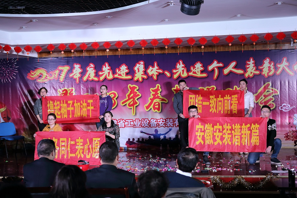 彩鳳辭舊歲,金犬迎新春。2月8日下午,安徽安裝公司2018年迎新春聯歡會如期舉行。公司領導及全體員工200余人歡聚一堂,共迎新春佳節,共享節日喜悅!