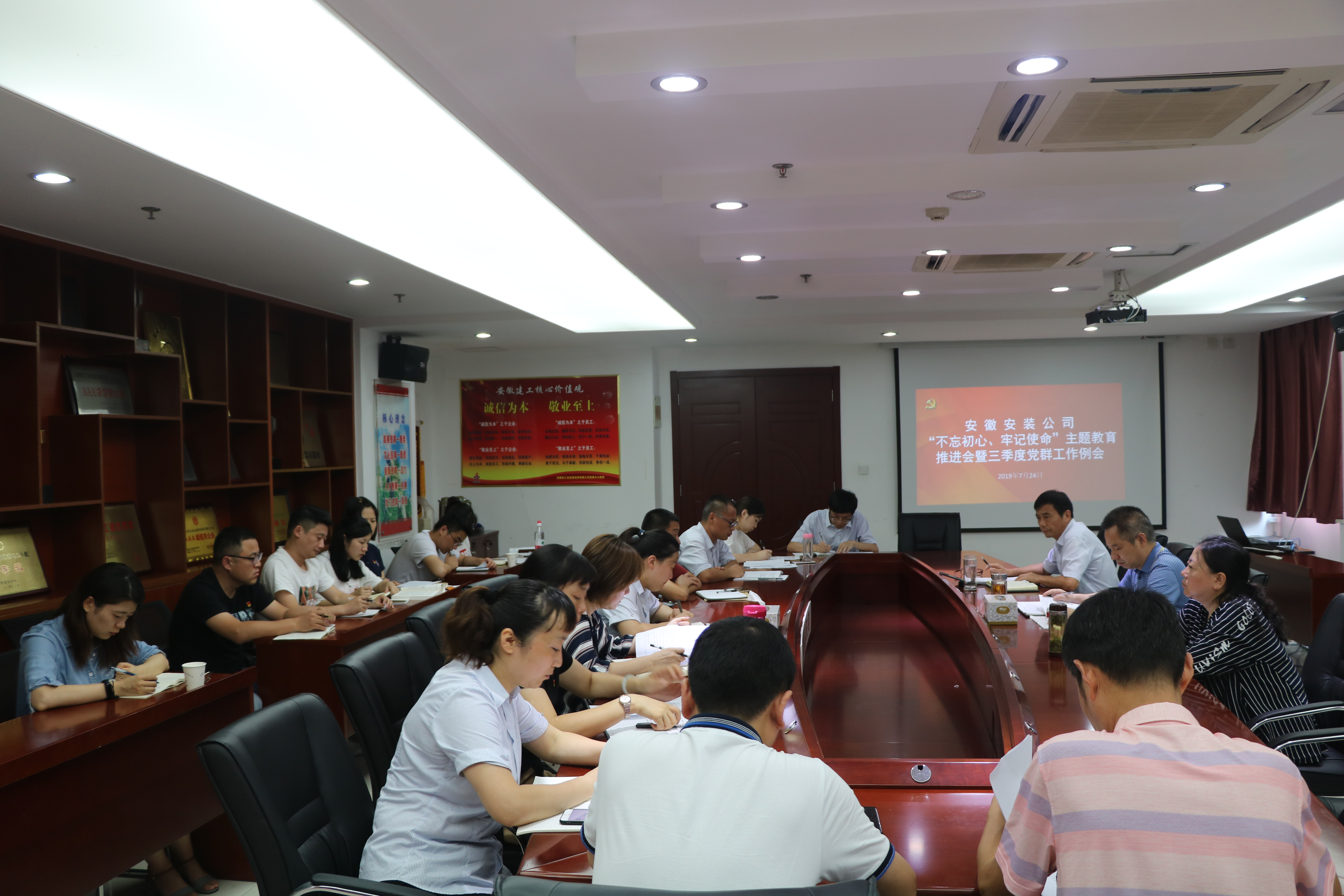 7月24日下午,安徽安裝公司黨委召開“不忘初心、牢記使命”主題教育工作推進會暨三季度黨群工作會議。公司有關(guān)領(lǐng)導(dǎo)、黨群部門人員、所屬各黨支部書記、工會及團支部主要負責(zé)同志參加會議,會議由公司黨委委員、紀委書記、工會主席李寬旭主持。