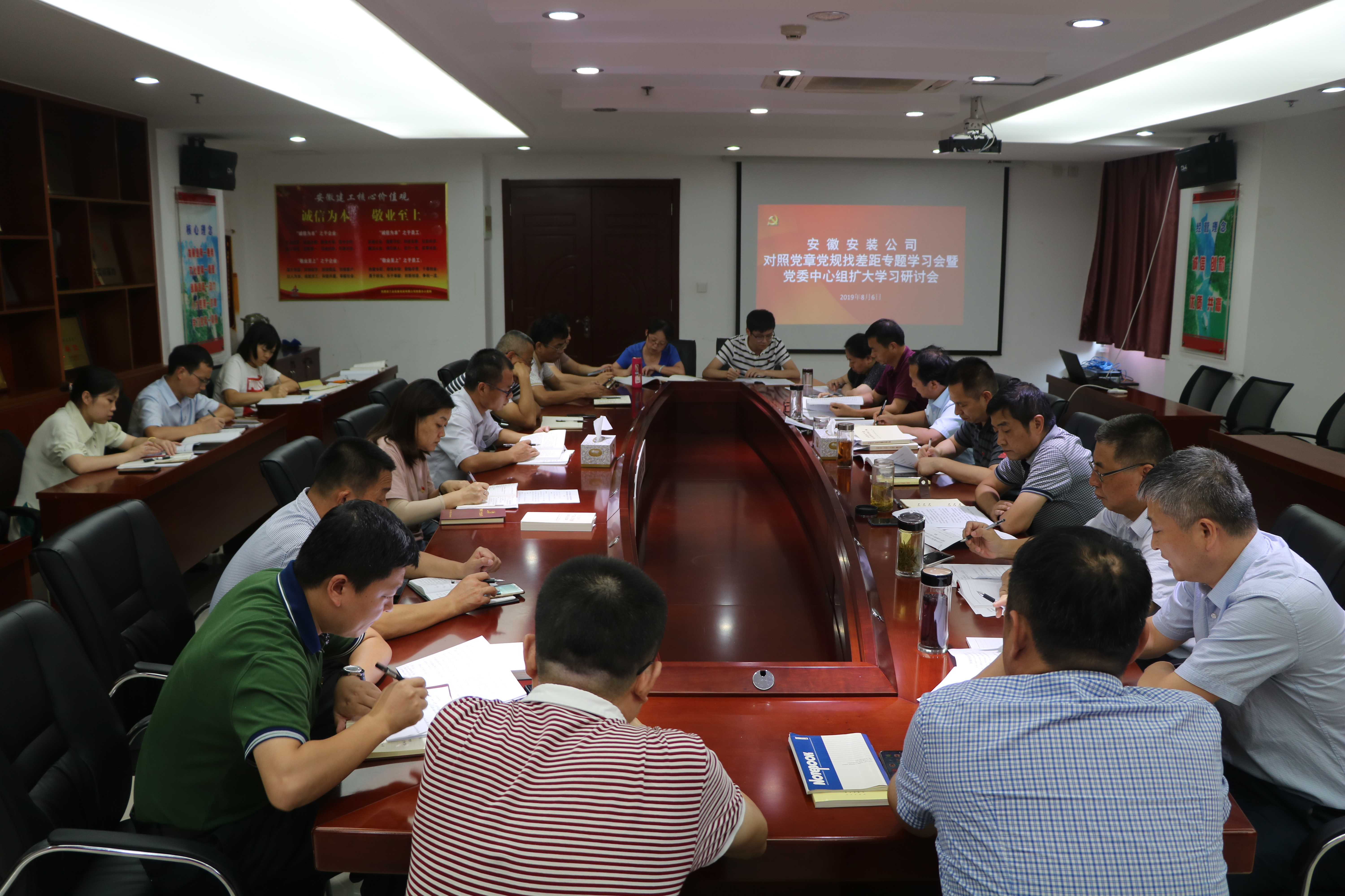 8月6日下午,安徽安裝公司黨委組織召開對照黨章黨規找差距專題學習會暨黨委中心組擴大學習研討會,公司領導班子成員、機關部門負責人參加會議,黨委委員、紀委書記、工會主席李寬旭主持會議。
