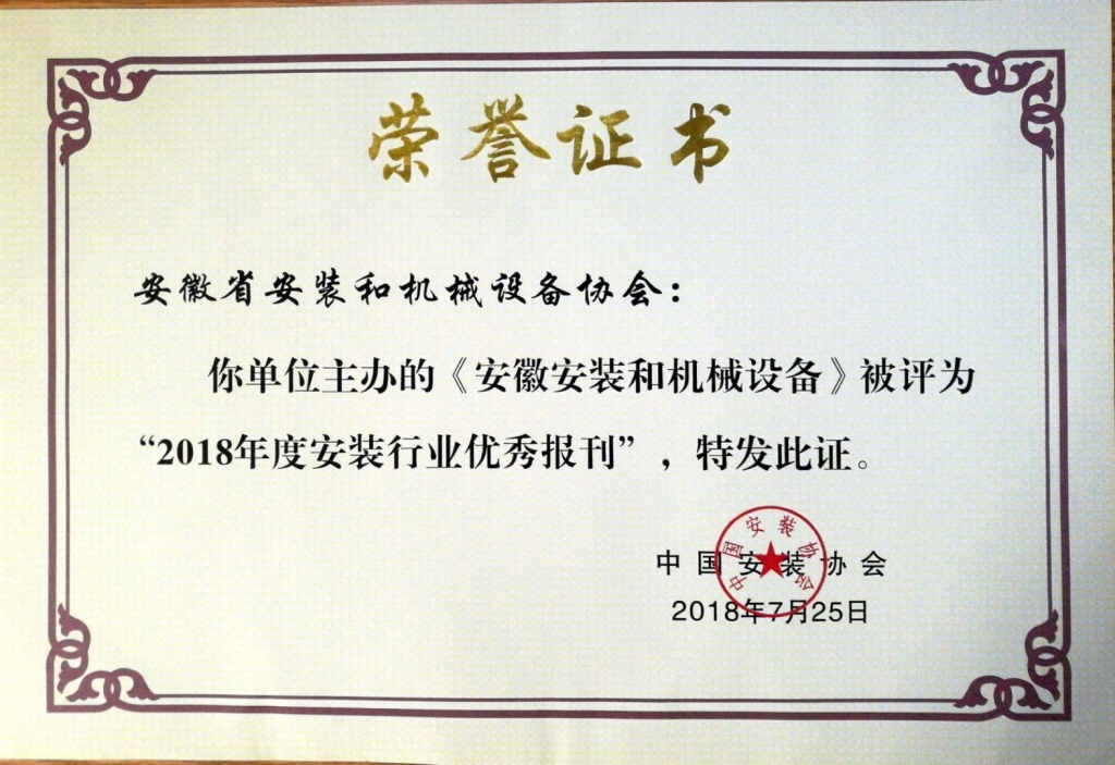 本次評選中,全國共5家行業(yè)協(xié)會獲得“優(yōu)秀期刊”稱號,7家行業(yè)協(xié)會獲得“優(yōu)秀網站” 稱號,協(xié)會主辦刊物《安徽安裝和機械設備》和網站名列其中,報刊主編李鵬飛、杜慶梅獲得“2018年度安裝行業(yè)優(yōu)秀主編”稱號,網站建設者徐俊、黃世碰獲得“2018年度安裝行業(yè)網站建設先進個人”稱號。安徽省工業(yè)設備安裝有限公司等單位獲得“優(yōu)秀網站” 稱號。表彰了先進,發(fā)揚了成績,希望會員單位向獲獎單位學習,認真貫徹落實黨的十九大精神,不斷創(chuàng)新企業(yè)信息宣傳工作,為提升安徽企業(yè)發(fā)展和安裝行業(yè)信息宣傳工作進步做出新的貢獻。