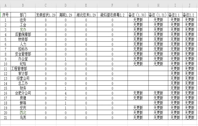 四是日報(bào)制度。自1月26日起實(shí)行日報(bào)制度,各分公司、各部門認(rèn)真做好登記,確保信息及時(shí)準(zhǔn)確,形成春節(jié)休假期間上下聯(lián)動(dòng)、聯(lián)防聯(lián)控的疫情防控工作格局。