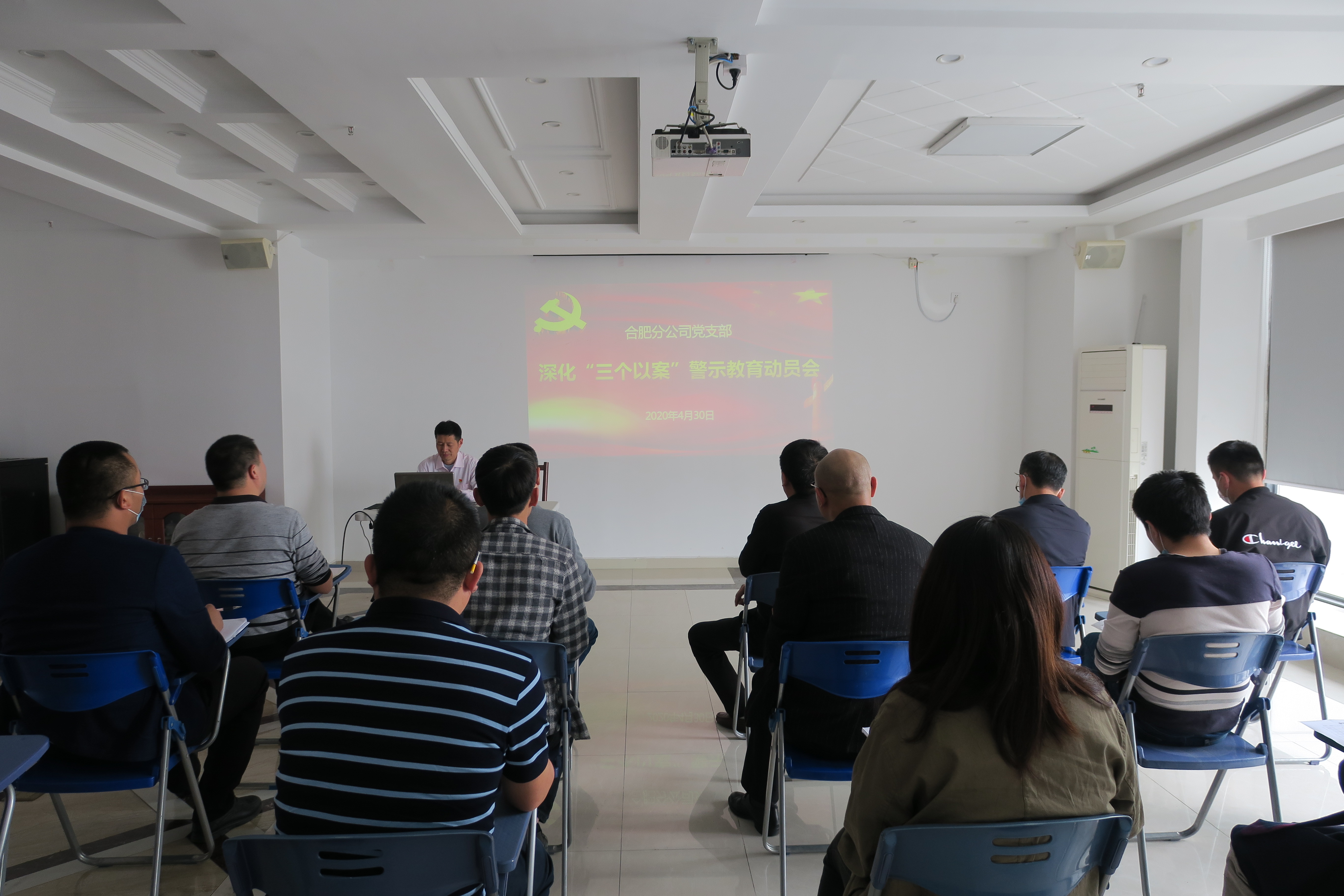4月30日下午,合肥分公司黨支部組織召開深化“三個以案”警示教育動員會。黨支部書記胡迎東主持會議,分公司領導班子、各部門主要負責人和機關全體黨員參會,項目黨員以釘釘視頻會議形式同步參加會議。