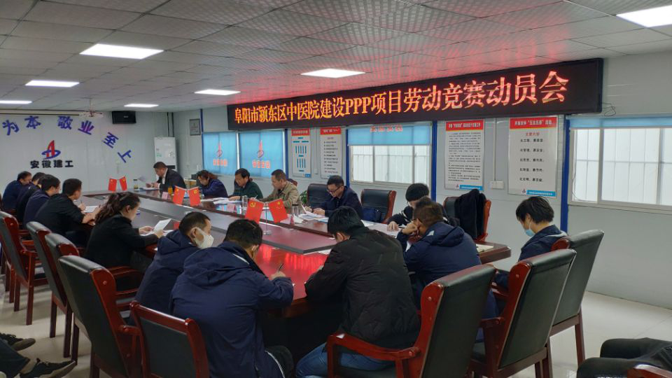 4月8日下午,阜陽市潁東區(qū)中醫(yī)院建設(shè)PPP項(xiàng)目部召開2020年勞動(dòng)競(jìng)賽動(dòng)員會(huì)。公司黨委書記、董事長(zhǎng)胡六中,副總經(jīng)理高飛,紀(jì)委書記、工會(huì)主席李寬旭及公司相關(guān)部門人員、房建(裝飾)分公司班子成員及項(xiàng)目部員工參會(huì),會(huì)議由分公司黨支部副書記張曼主持。