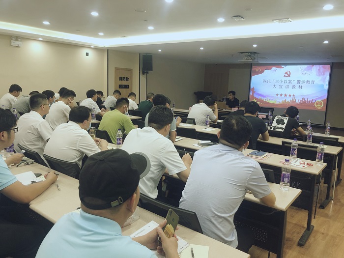 霍向東在總結時強調:一要深刻認識深化“三個以案”警示教育的重要性和必要性,從反面典型案例中汲取教訓,全面推進項目管理工作整改提升;二要堅定信心、迎難而上、快馬加鞭,大干下半年,確保項目主要指標“半年雙過半,全年奪勝利”的目標;三要“三個以案”警示教育為契機,在政治上、工作上、管理上、作風上存在的短板和缺點,不斷反省自身、回歸初心;四要推深做實“三個以案”警示教育,進一步壓實工作責任,統籌抓好項目黨建目標管理、生產經營、安全質量、疫情防控和警示教育等,確保警示教育往深里走、往實里走,實現項目現場管理有序健康發展。