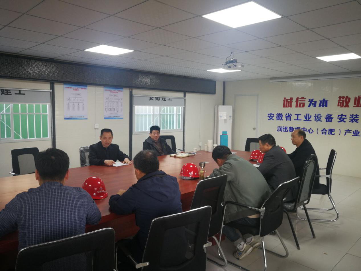 2月19日,公司黨委書記、董事長胡六中赴房建(裝飾)分公司潤迅數(shù)據(jù)中心(合肥)產(chǎn)業(yè)園項(xiàng)目調(diào)研慰問,分公司副經(jīng)理、工程部經(jīng)理、項(xiàng)目部職工參加調(diào)研。