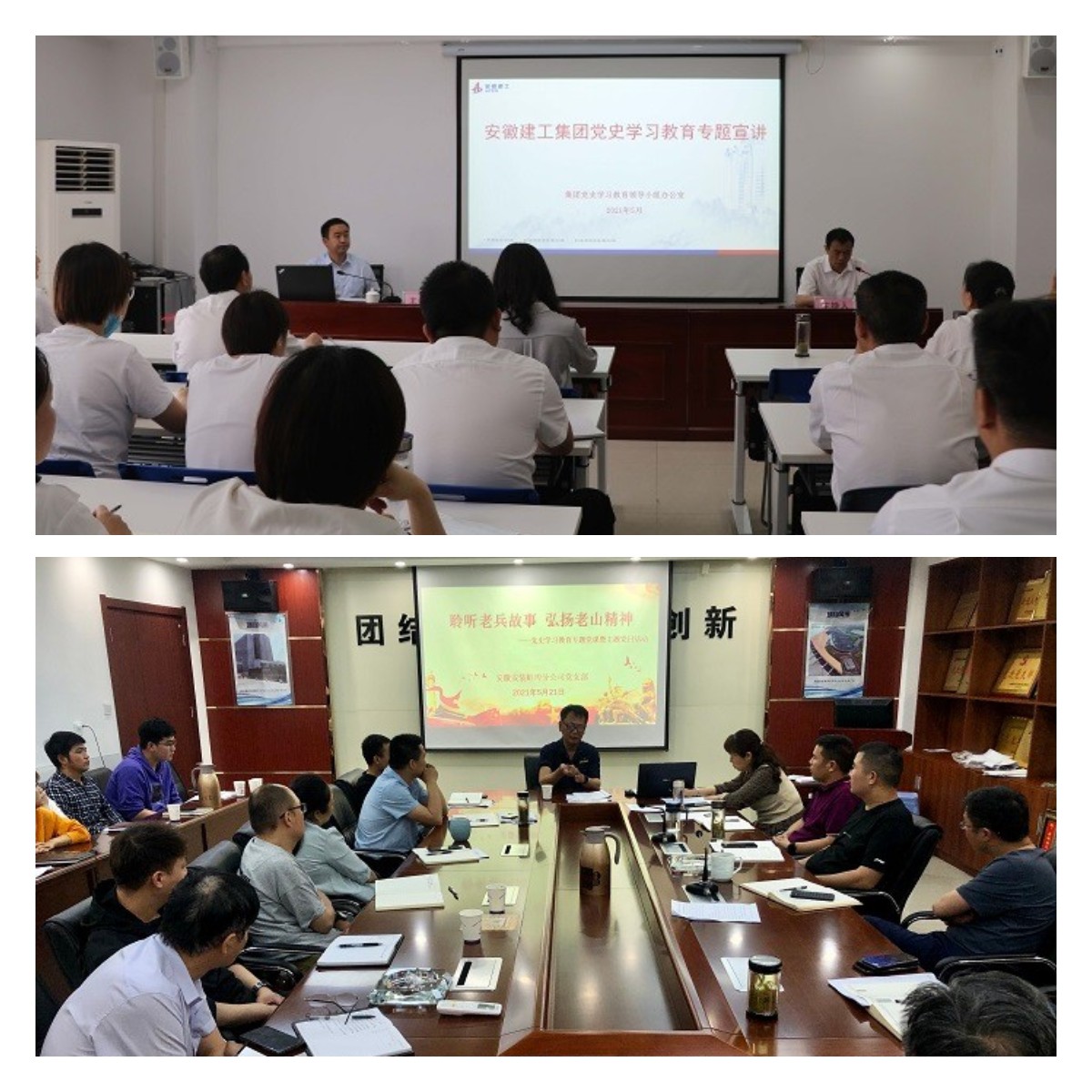 專題宣講課堂。5月27日下午,股份公司黨委委員、副總經理黃代,帶領集團黨史學習教育第十七宣講組成員赴安徽安裝公司開展黨史學習教育專題宣講。公司領導班子成員分赴西安、阜陽、蚌埠、合肥等地區分公司及項目一線作黨史學習教育專題黨課報告。進一步將黨史學習“送學”到一線,確保習總書記在黨史學習教育動員大會上的講話精神落實到基層,確保公司自上而下扎實開展好黨史學習教育,將黨史學習教育的成果轉化為干事創業的強大動力。蚌埠分公司黨支部組織開展“聆聽老兵故事 弘揚老山精神”黨史學習教育專題黨課。邀請曾參加過對越自衛反擊戰的退伍老兵為大家上了一堂別開生面的黨課,講述用鮮血和生命捍衛國家領土和民族尊嚴的崢嶸歲月。