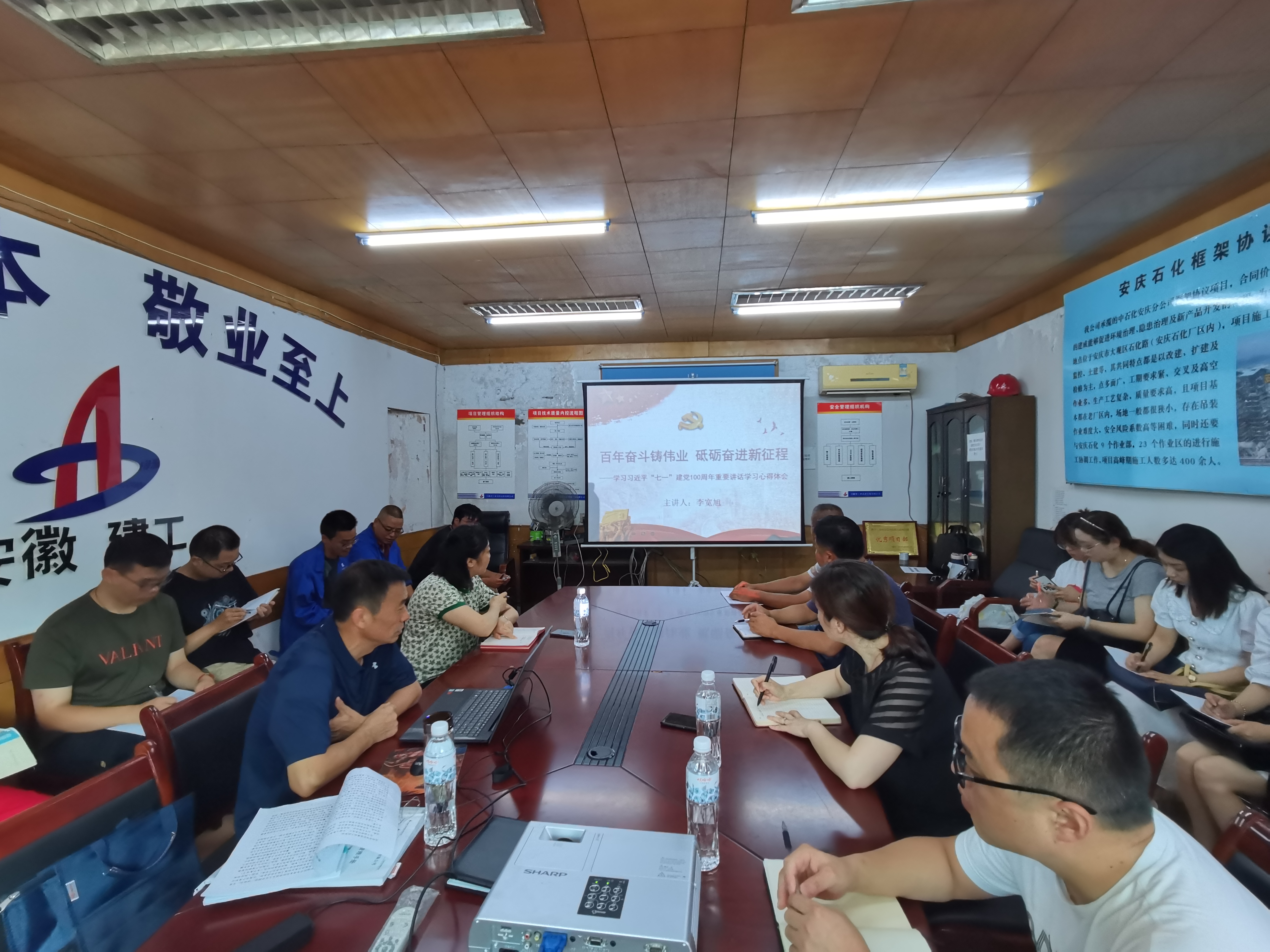 為進一步加強對習近平總書記在慶祝中國共產黨成立100周年大會上的重要講話精神的學習,深入解讀習總書記提出的“偉大建黨精神”,7月16日上午,公司紀委書記、工會主席李寬旭以“百年奮斗鑄偉業 砥礪奮進新征程”為題,為安慶分公司全體員工講授了一堂內容豐富的專題黨課。