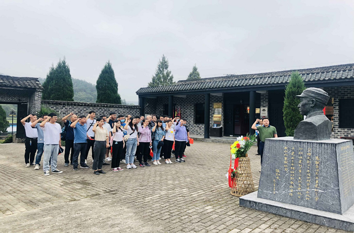 來到新四軍四支隊革命舊址紀念館,大家首先在紀念碑前集體肅立,向革命先烈敬獻花籃,并在紀念碑前三次鞠躬默哀,以表達對革命烈士的緬懷與敬意,面向鮮艷的中國共產黨黨旗,在分公司黨支部書記王偉的帶領下重溫入黨誓詞。