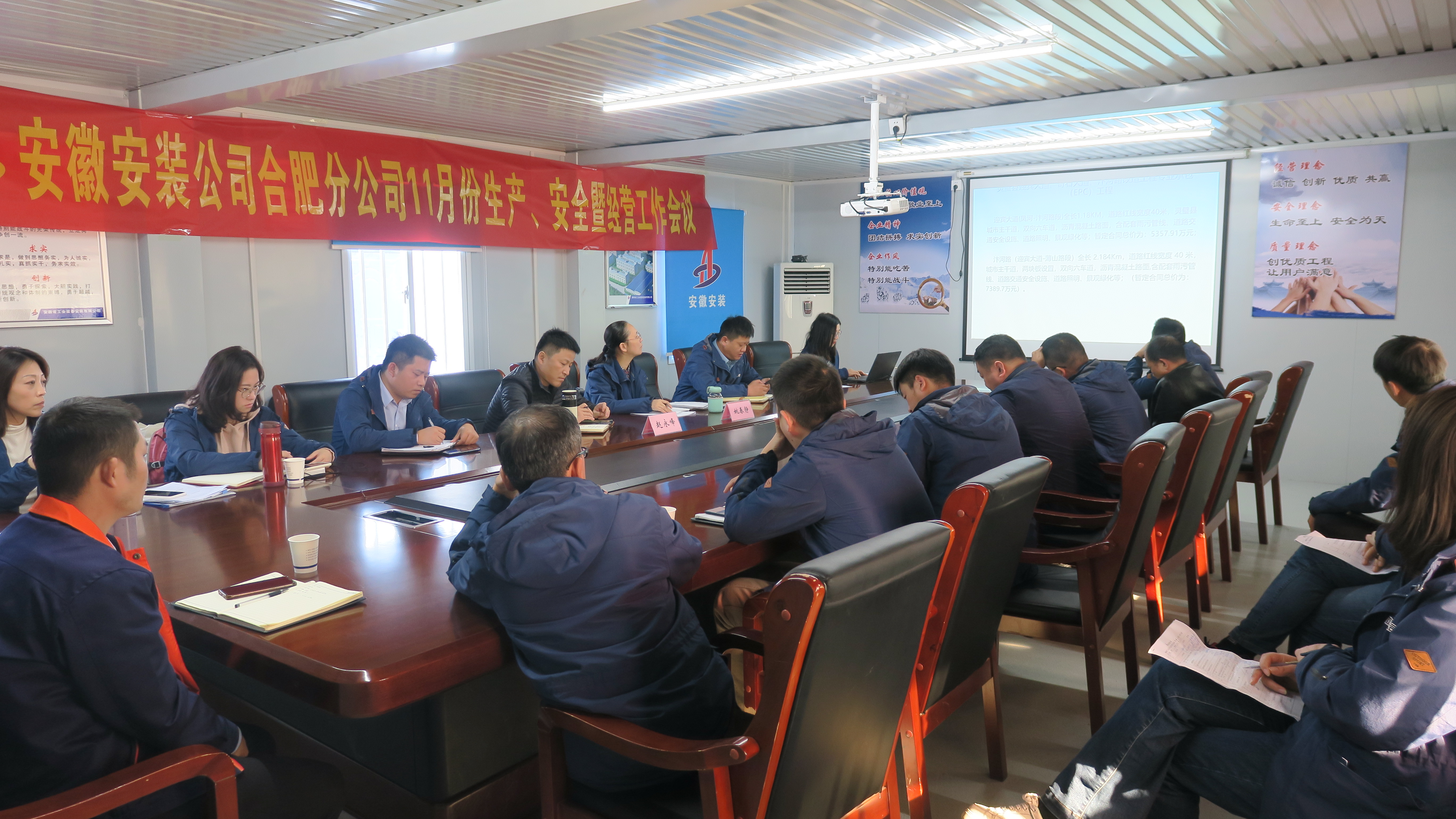 11月10日下午,合肥分公司在新宇藥業微生物藥物生產建設項目部召開了分公司11 月份生產、安全暨經營工作會議。分公司領導班子成員、所屬各項目經理、機關各部門負責人參會,會議由分公司副經理夏國祥主持。