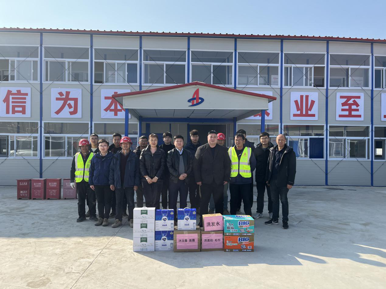 寒冬送溫暖,關愛暖人心。分公司經理許杰、黨支部書記王偉親手將慰問品送到了每一位堅守奮斗在一線的項目職工的手中,并與項目職工展開親切交流,詳細了解施工人員的生活情況,并對冬季取暖安全提出了要求。叮囑大家冬天室外作業天氣冷、施工跨度大、危險源多,一定要遵守施工安全管理規范,注重人身安全和身體健康,在保證施工生產進度的同時,能夠度過一個安全、健康、溫暖的冬季;通過與一線員工談心談話,進一步了解職工的生活冷暖、家庭情況,并幫助職工解答公司近期工作法規特別是現階段新冠疫情常態化管理情況下的返鄉政策,把溫暖不僅送到了職工的手中,還送到了職工的心里。