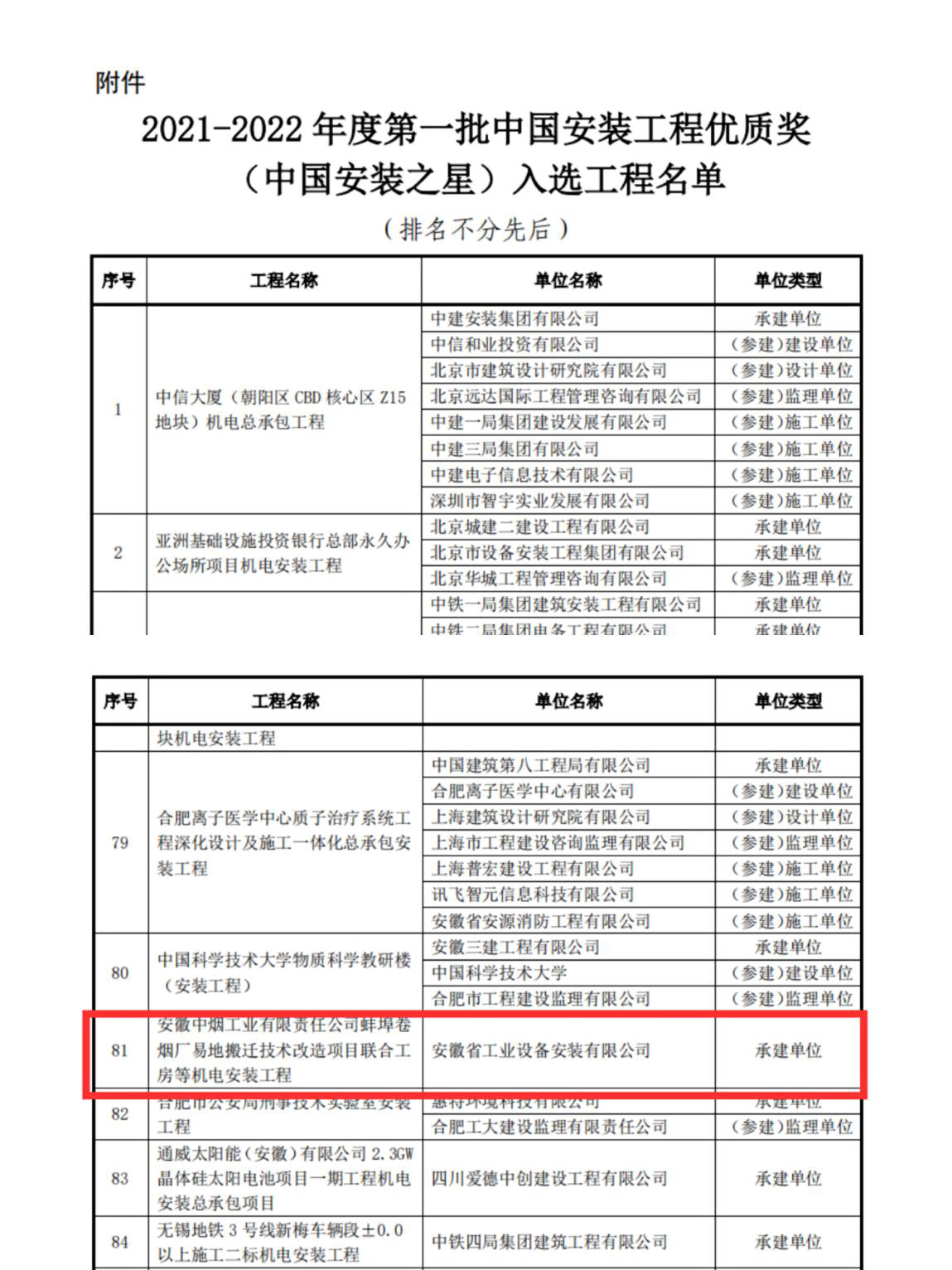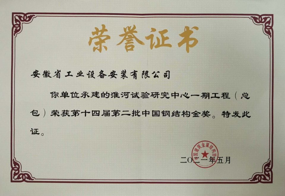 2021年公司首次一年內(nèi)獲得兩項國家級優(yōu)質(zhì)工程獎,即中國鋼結(jié)構(gòu)金獎、中國安裝工程優(yōu)質(zhì)獎(安裝之星)。