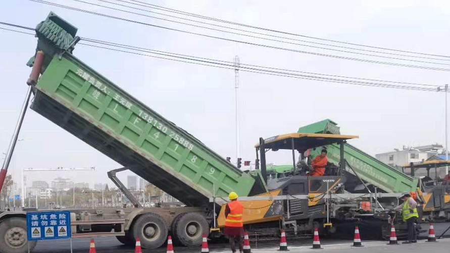 爭分奪秒 大干快上(六) —合肥分公司靈璧縣市政道路EPC項(xiàng)目汴河路主路面面層瀝青攤鋪完成