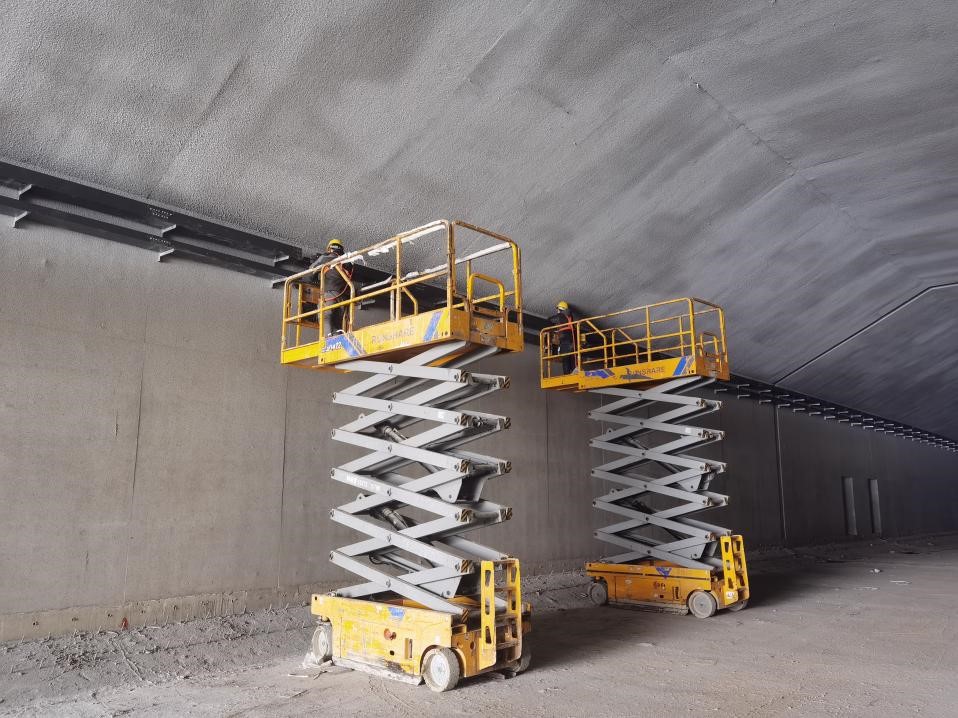 東側敞口段300多米是完成總包單位下達的“樣板段年前完工”目標任務的重點實施地段,為了保證施工進度,項目部管理人員靠前指揮,認真分析,研判施工進度,梳理現場存在的問題,共同探討解決的方案,針對隧道作業面有限,人員進出不便等諸多困難,項目部采取“白加黑”“5+2”,勞務班組交替作業的方式,做到人休工地不停歇。項目施工員、安全員充分發揚“釘子”精神,長時間釘在施工現場,旁站指導及監督檢查,確保了鋼板切割、橋架支架的制作與安裝、橋架的安裝、消防管道的安裝等等,各項工作安全快速向前推進。