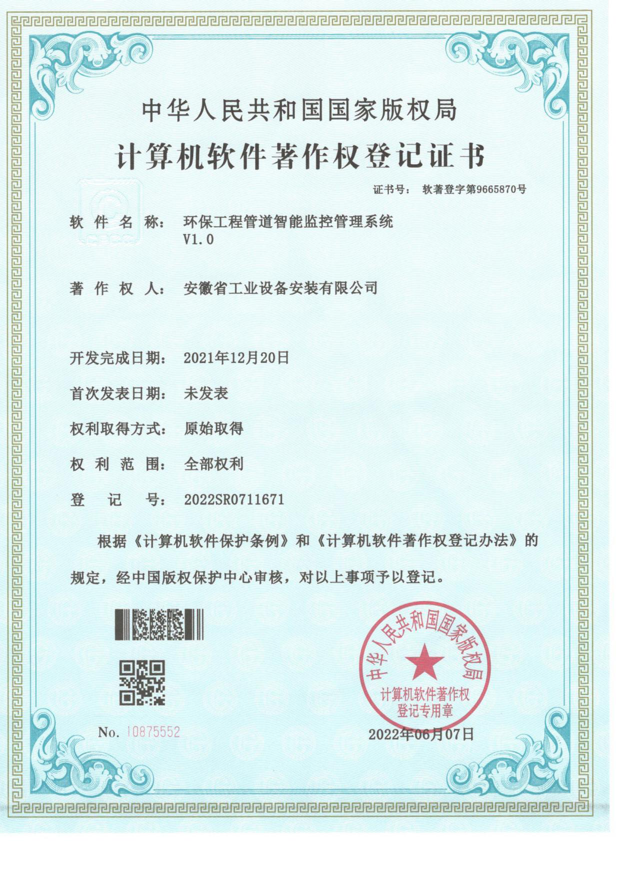 近日,經國家版權局審核批準,安徽安裝公司申報的《環保工程管道智能監控管理系統V1.0》喜獲計算機軟件著作權登記證書,這標志著公司在數字與信息化發展上實現新突破、邁上新臺階,開啟了數字化轉型新征程。