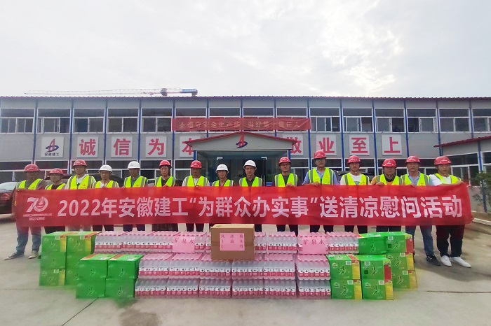 趙伯平一行為堅(jiān)守在一線的職工送上礦泉水、綠茶、仁丹、十滴水等防暑降溫物品,向項(xiàng)目員工轉(zhuǎn)達(dá)公司黨委對(duì)他們的關(guān)心,對(duì)他們?cè)谘谉崽鞖鈭?jiān)守崗位和辛勤勞動(dòng)表示衷心感謝和誠摯慰問,同時(shí)叮囑大家高溫季節(jié)作業(yè)時(shí),要調(diào)整作息時(shí)間,做好防暑降溫,注意施工安全。