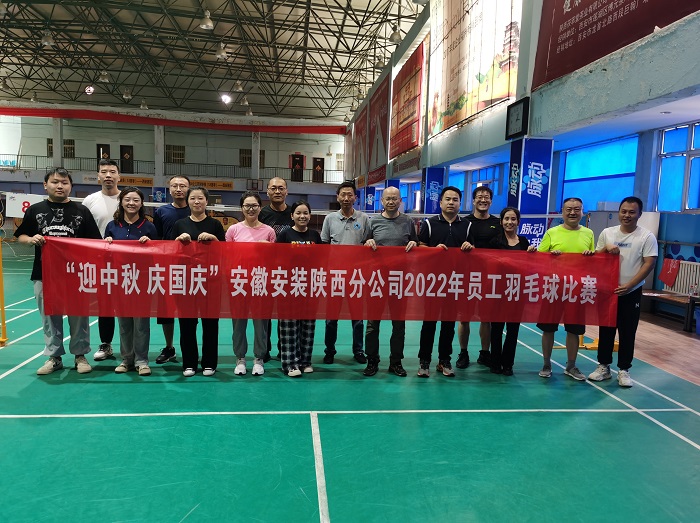 為慶祝中華人民共和國成立73周年,迎接黨的二十大,積極營造團(tuán)結(jié)和諧的企業(yè)氛圍。9月27日下午,安徽安裝陜西分公司在嘉龍大廈體育館組織開展了“慶國慶“員工羽毛球比賽。分公司員工踴躍報(bào)名參加。