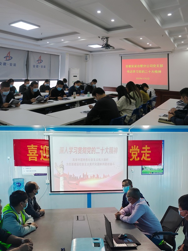 11月2日,安徽安裝合肥分公司黨支部召開黨員大會,專題學(xué)習(xí)黨的二十大精神。分公司黨支部堅持黨建引領(lǐng),把學(xué)習(xí)好、宣貫好黨的二十大精神作為當前和今后一個時期的首要政治任務(wù),通過班子理論學(xué)習(xí)會、支部“三會一課”、黨員活動日等多種形式,以及微信公眾號、網(wǎng)站、宣傳欄、橫幅標語等多種載體,加大對黨的二十大精神宣貫力度,弘揚偉大建黨精神,用先進的理論武裝頭腦,指導(dǎo)實踐,推動工作,以優(yōu)異的成績推動黨的二十大精神在基層落地生根、開花結(jié)果,為推動安徽安裝“十四五”高質(zhì)量發(fā)展而不懈努力。