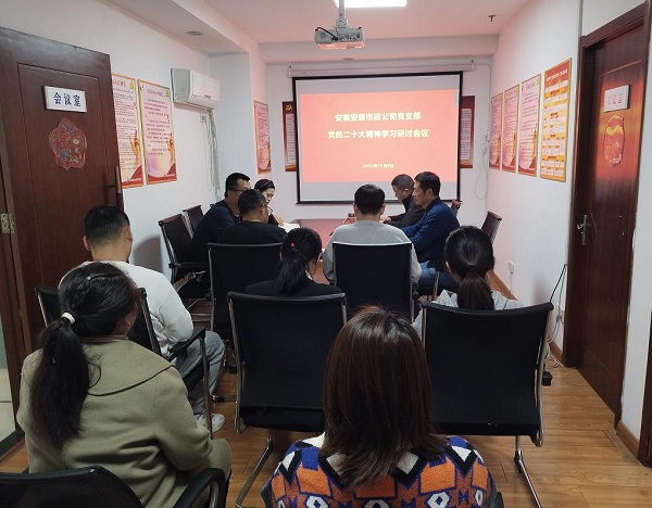 安慶分公司黨支部精心組織及時學(xué)。組織全體員工收聽收看黨的二十大開幕會、中共中央介紹解讀黨的二十大報告新聞發(fā)布會,通過電視、網(wǎng)絡(luò)、廣播等多種渠道及時了解和關(guān)注大會盛況,第一時間學(xué)習(xí)領(lǐng)會黨的二十大精神。組織購買《黨的二十大輔導(dǎo)讀本》、新修改的《中國共產(chǎn)黨章程》學(xué)習(xí)用書,向黨員干部發(fā)放,通過黨員大會、黨員活動日、黨員帶頭領(lǐng)學(xué)等形式,為全面深入學(xué)習(xí)黨的二十大精神,安慶分公司全體黨員領(lǐng)導(dǎo)干部堅持精研細讀黨的二十大報告、黨章等大會文件,全面系統(tǒng)地領(lǐng)會和把握黨的二十大精神,在真學(xué)真懂、真悟真用上作好表率、走在前列,帶動全分公司上下迅速掀起學(xué)習(xí)宣傳貫徹黨的二十大精神熱潮。