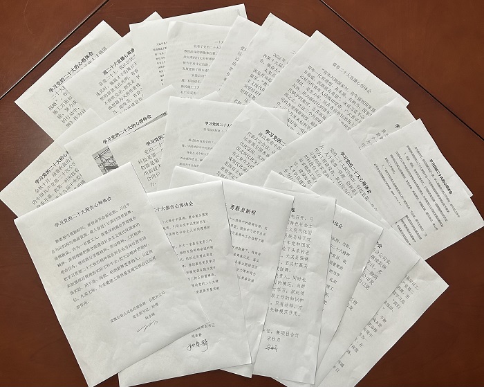 班子示范帶頭學(xué)。分公司黨支部第一時(shí)間召開專題會(huì)議,組織學(xué)習(xí)黨的二十大報(bào)告、決議以及《中國(guó)共產(chǎn)黨章程(修正案)》等內(nèi)容,把深入學(xué)習(xí)貫徹黨的二十大精神融入主責(zé)主業(yè)、工作崗位、日常生活。支部組織各黨小組、機(jī)關(guān)部門、項(xiàng)目部集中學(xué)習(xí)、組織研討、撰寫心得,充分動(dòng)員全體干部職工認(rèn)真學(xué)習(xí)報(bào)告原文,把握講話精髓要義和實(shí)踐要義,自覺運(yùn)用最新理論成果研究新情況、解決新問(wèn)題,提高干事創(chuàng)業(yè)的本領(lǐng)。