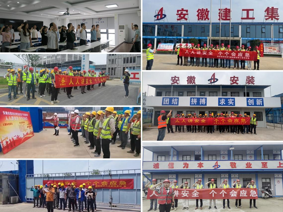 在第二十二個全國“安全生產月”來臨之際,安徽安裝合肥分公司積極響應,全面落實省、市、集團公司以及公司“安全生產月”活動部署。6月1日上午,分公司組織機關及所屬在建項目舉行了“安全生產月”動員會,集中學習了習近平總書記關于安全生產重要論述,并開展了集體安全宣誓、橫幅簽名、觀看2023年安全生產月警示教育片等各項活動。
