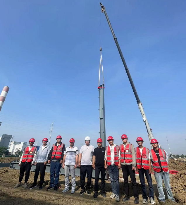 丙類車間鋼架順利開吊是該工程一個重要里程碑節(jié)點(diǎn)。為確保進(jìn)展順利,吊裝前,項(xiàng)目部組織專業(yè)人員對吊裝方案、安全措施、質(zhì)量標(biāo)準(zhǔn)、起吊機(jī)械等進(jìn)行詳細(xì)審查,開展現(xiàn)場土建交付安裝前的條件確認(rèn),項(xiàng)目經(jīng)理現(xiàn)場指揮,安全管理人員全程監(jiān)控,保證鋼結(jié)構(gòu)吊裝能夠高標(biāo)準(zhǔn)開吊,為后續(xù)安裝工作奠定堅(jiān)實(shí)基礎(chǔ)。