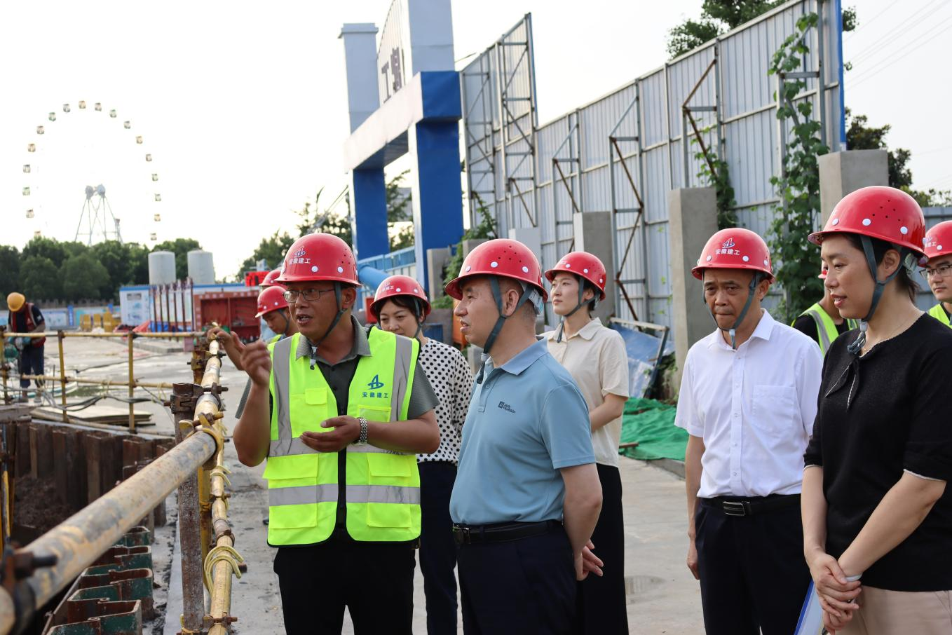 在蚌埠市公安局“三個基地”項目,胡六中詳細查看了現(xiàn)場安全文明施工、質(zhì)量管控等情況,叮囑項目部要在確保安全生產(chǎn)的前提下,進一步加快施工進度,針對近期高溫天氣,加強現(xiàn)場安全巡查,合理安排施工時間,切實做好防暑降溫工作。他要求,要加強項目成本管控,堅持黨建引領,扎實推進主題教育在項目一線落實落地、走深走實,做好項目黨建品牌創(chuàng)建和“三號聯(lián)創(chuàng)”,展示建工安裝良好形象。