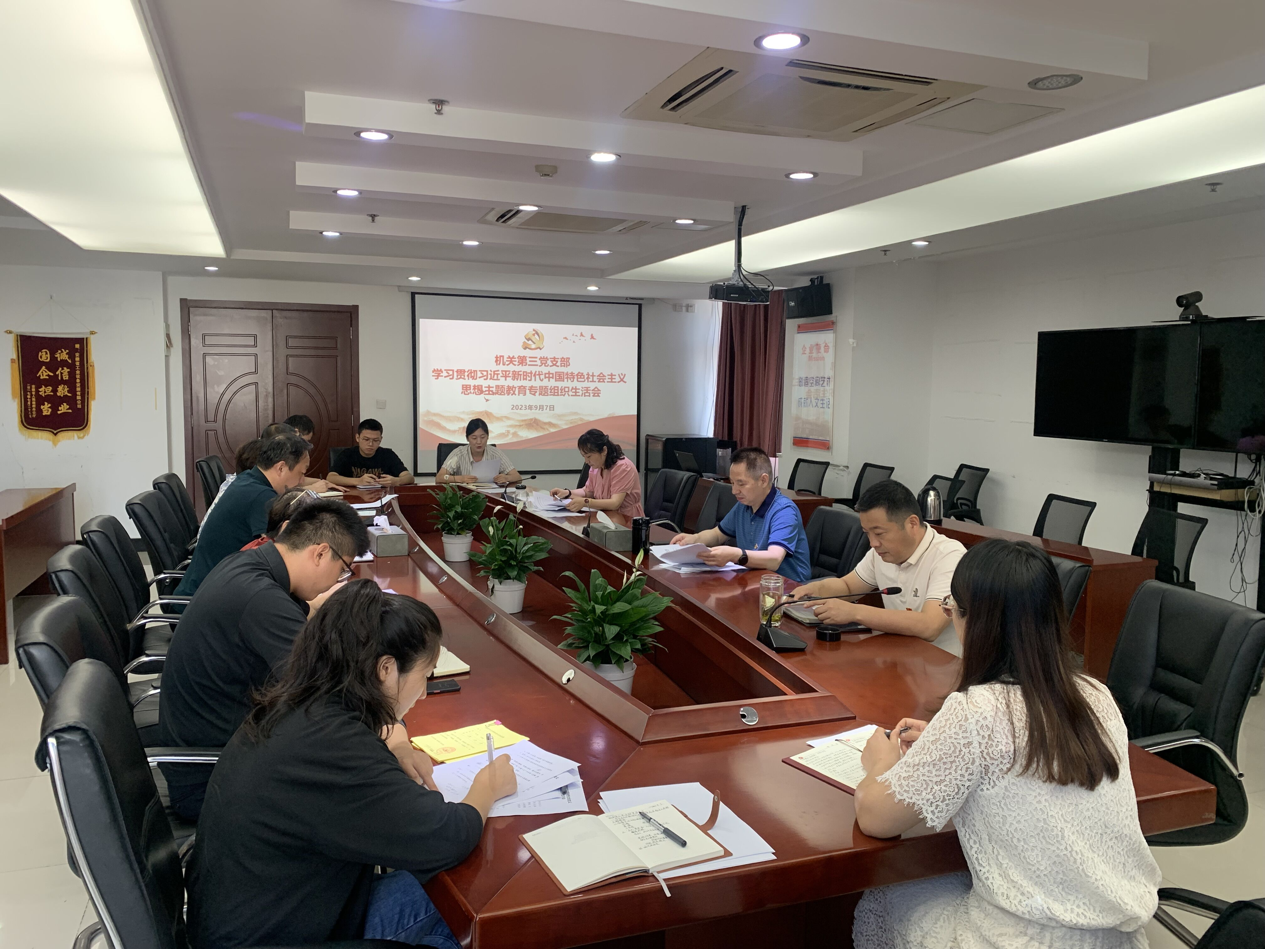 9月7日上午,建工安裝公司機關第三黨支部組織召開學習貫徹習近平新時代中國特色社會主義思想主題教育專題組織生活會。公司黨委書記、董事長胡六中以普通黨員身份參加會議,會議由黨支部書記王敏主持。