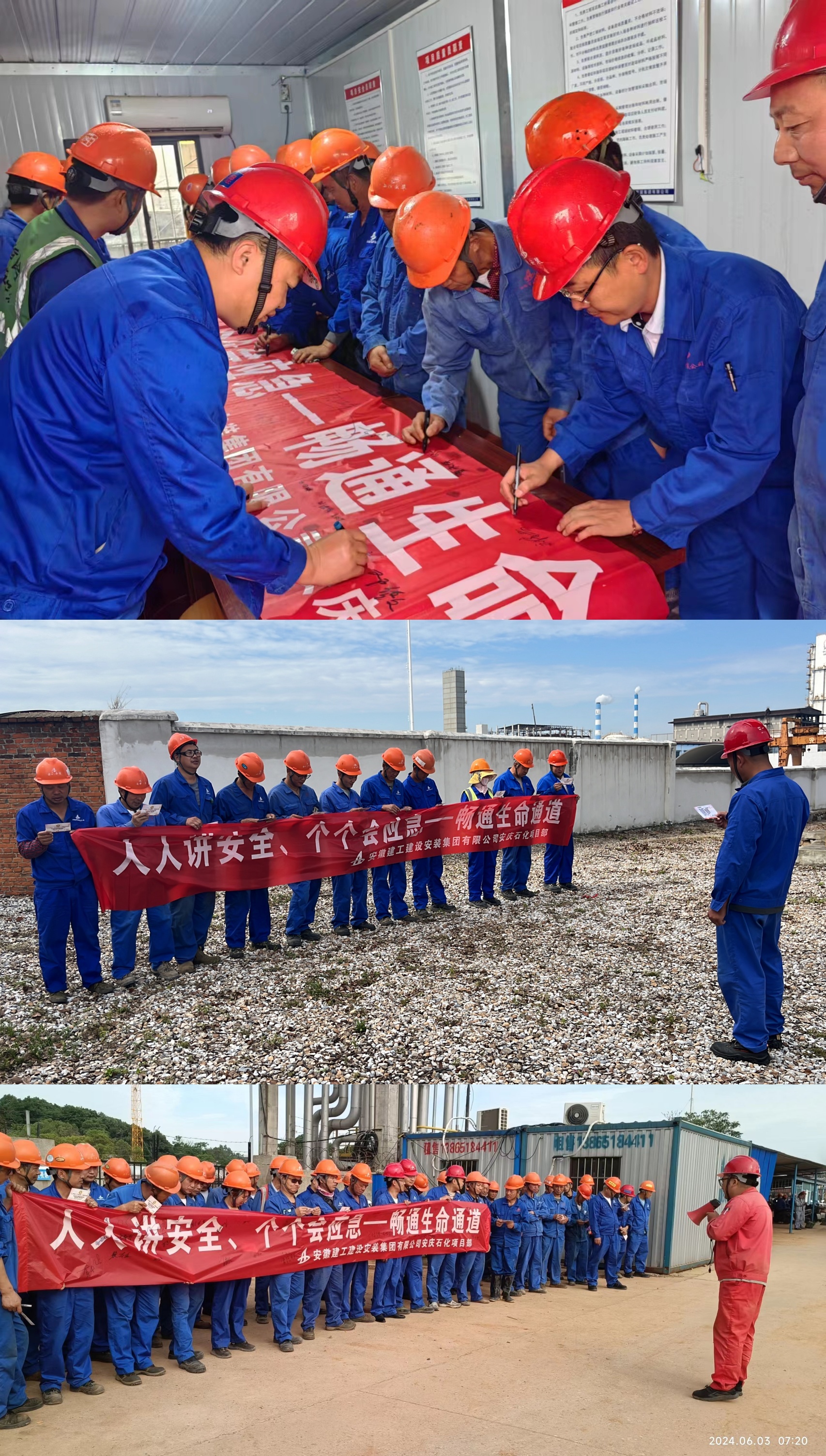 6月3日,安慶分公司在石化項目部舉行2024年“安全生產(chǎn)月”啟動儀式,分公司領(lǐng)導(dǎo)班子及分公司機關(guān)、項目部員工參加本次啟動儀式。