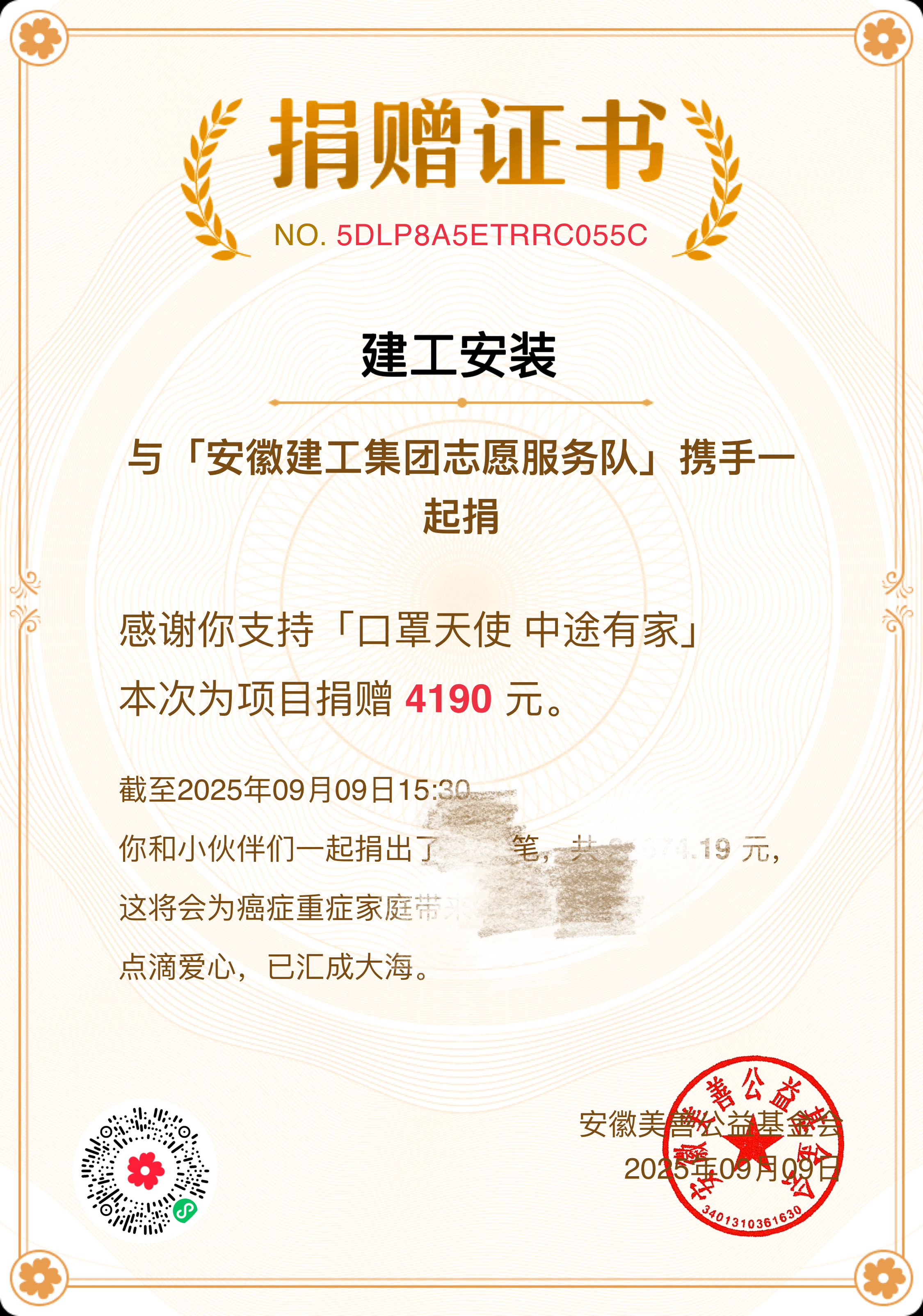 此次活動不僅彰顯了建工安裝社會責任感,更以青春力量踐行了“小善大愛”的公益理念。未來,建工安裝團委將以更多元的形式傳遞青春正能量,讓“小善大愛”的種子在團隊中不斷生根發芽。