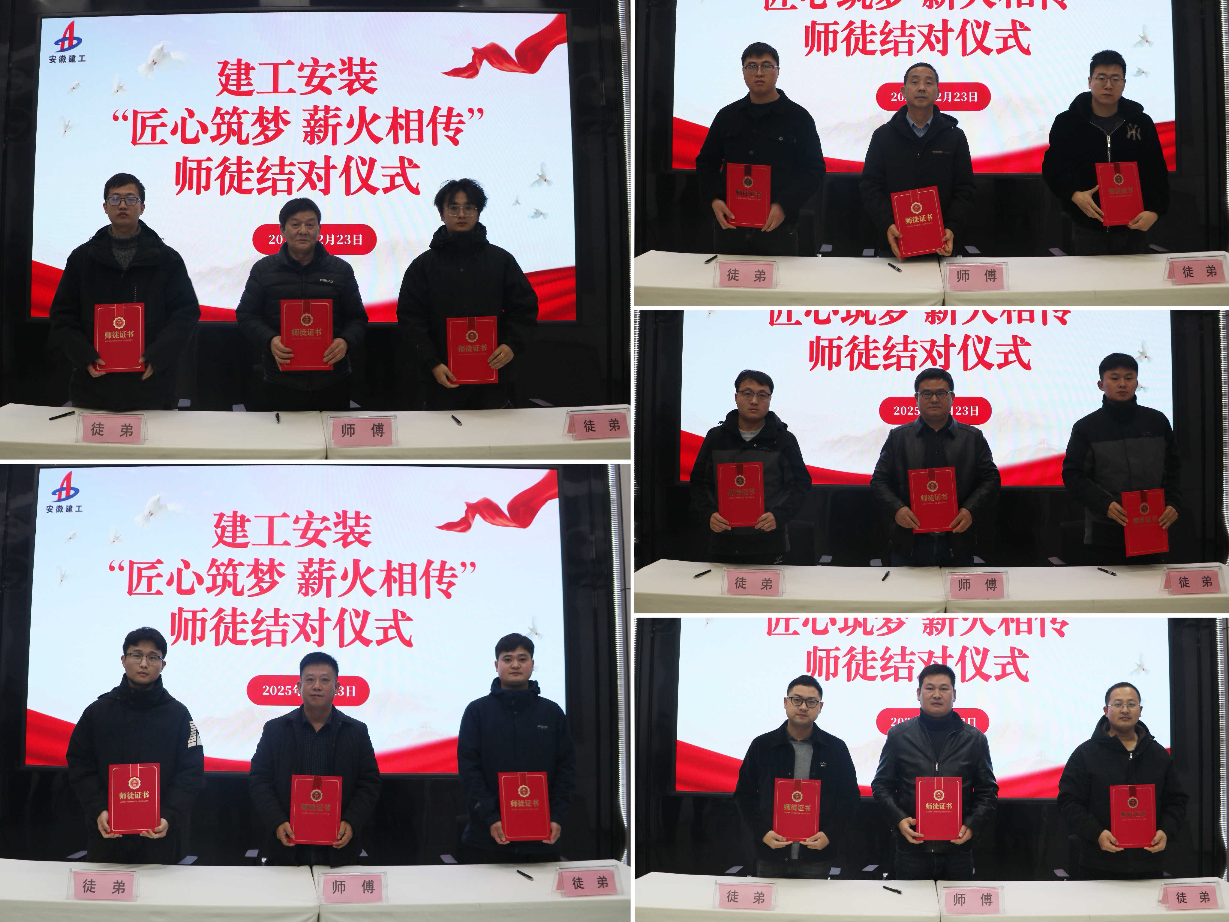 為筑牢轉(zhuǎn)型發(fā)展人才根基,加速人才梯隊(duì)建設(shè),12 月 23 日上午,建工安裝 “匠心筑夢(mèng) 薪火相傳” 師徒結(jié)對(duì)儀式在公司第一會(huì)議室舉行。公司黨委書(shū)記、董事長(zhǎng)朱珍宏出席儀式并講話,黨委副書(shū)記呂遠(yuǎn)主持儀式。