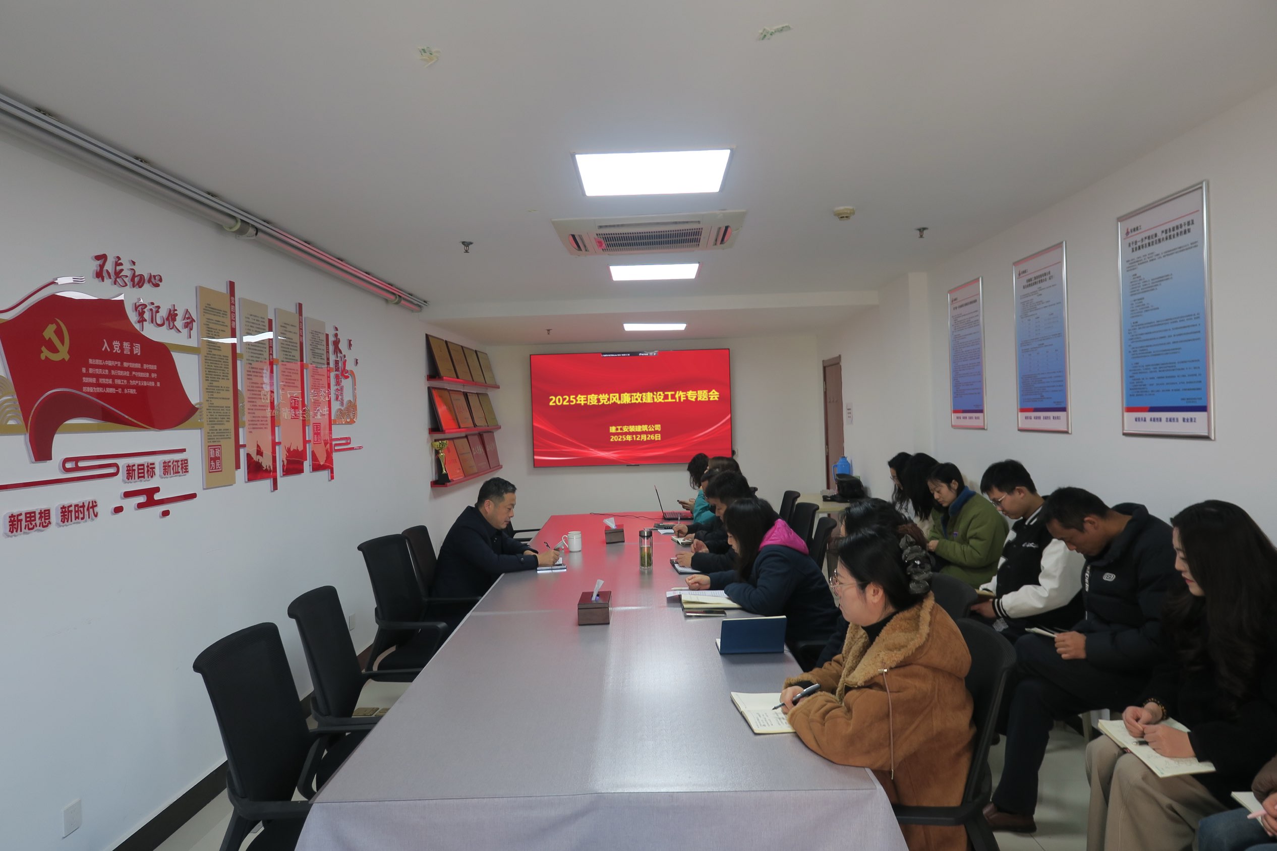 12月26日上午,建工安裝建筑公司召開2025年度黨風廉政建設工作專題會,建工安裝黨委委員、財務總監李雷,建筑公司領導班子、部門負責人、各項目主要負責人、支部黨員參加會議。
