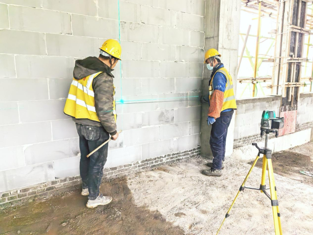 涇青高速公路項(xiàng)目工人正在進(jìn)行定位放線,為墻面開槽、預(yù)埋線管做準(zhǔn)備