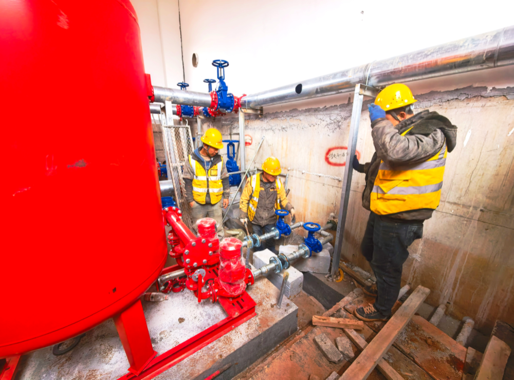 涇青高速公路項(xiàng)目工人正在進(jìn)行管道附件的安裝與固定